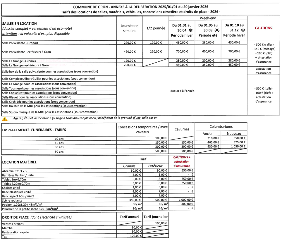 Pour louer une salle des fêtes pour un anniversaire un mariage ou autre dans la commune de Gron, vous devez contacter la mairie pendant ses horaires d’ouverture ou vous y rendre directement 1 Place de l’Église.